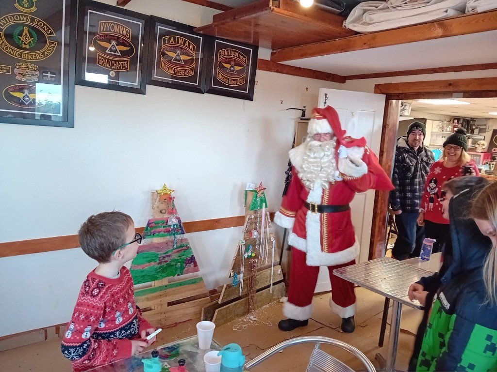 Donations of £1,000 were gratefully received by learning support units in primary schools of Bodmin, Camelford and Launceston. We also donated £1,000 to Little Harbour, the Cornish children’s hospice. The chocolate eggs collected at the Egg Run were distributed to care homes, children’s units and hospitals across the area. We celebrated King Charles’ coronation in style!We enjoyed a summer of riding near and far, supporting local events and simply appreciating the countryside and each other’s company. We held our fifth annual Branding event – an enjoyable weekend attended by Chapters from around the UKThe 2023 installation at the Earl of St Germans Lodge No 7031 was a memorable occasion with WBro Hallett installing his younger brother into the chair for the first time, witnessed by the lodge Secretary – their father. Widows Sons Grand Chapter attended Remembrance Sunday gatherings across the Province. Father Christmas visited children at our annual crafts event in December. The year was rounded off by a white table meeting at the Earl of St Germans No 7031, with a talk by and cheque presentation to Children’s Hospice South West.