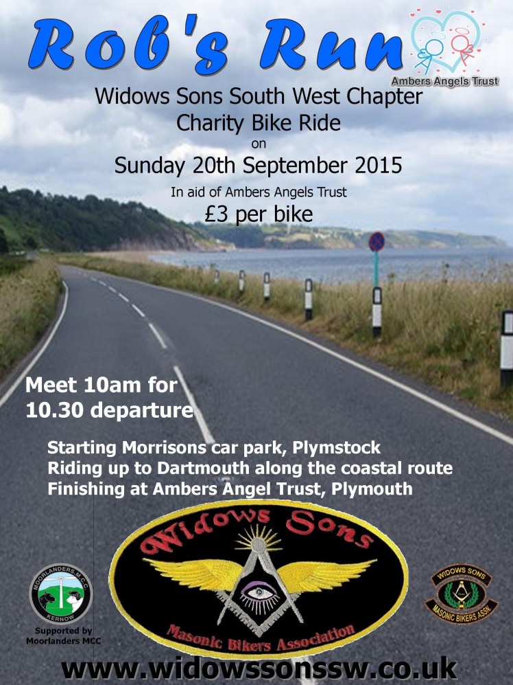 Rob was instrumental in forming the Widows Sons link with Ambers Angels Trust, a Plymouth based organisation supporting victims of child abuse, Rob’s Run initially raised funds for them.